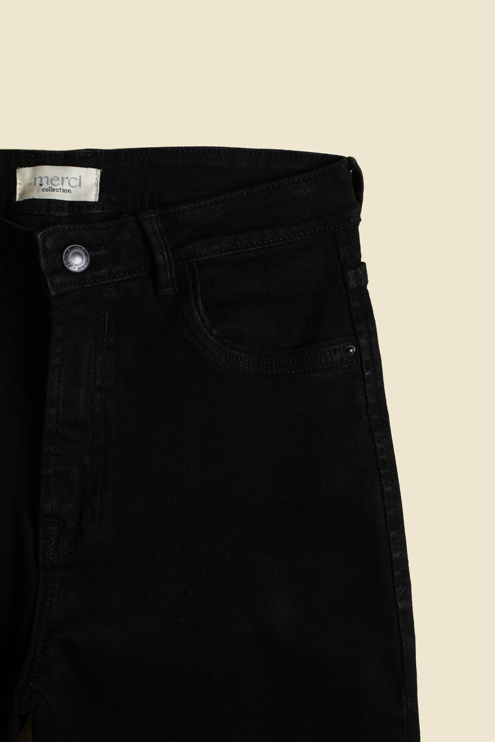 Confeccionado en Denim licrado, ofrece mayor elasticidad y comodidad sin perder estructura, permitiendo libertad de movimiento y un ajuste confortable durante todo el día. El color negro aporta un acabado clásico y versátil, fácil de combinar en looks casuales o más sofisticados.