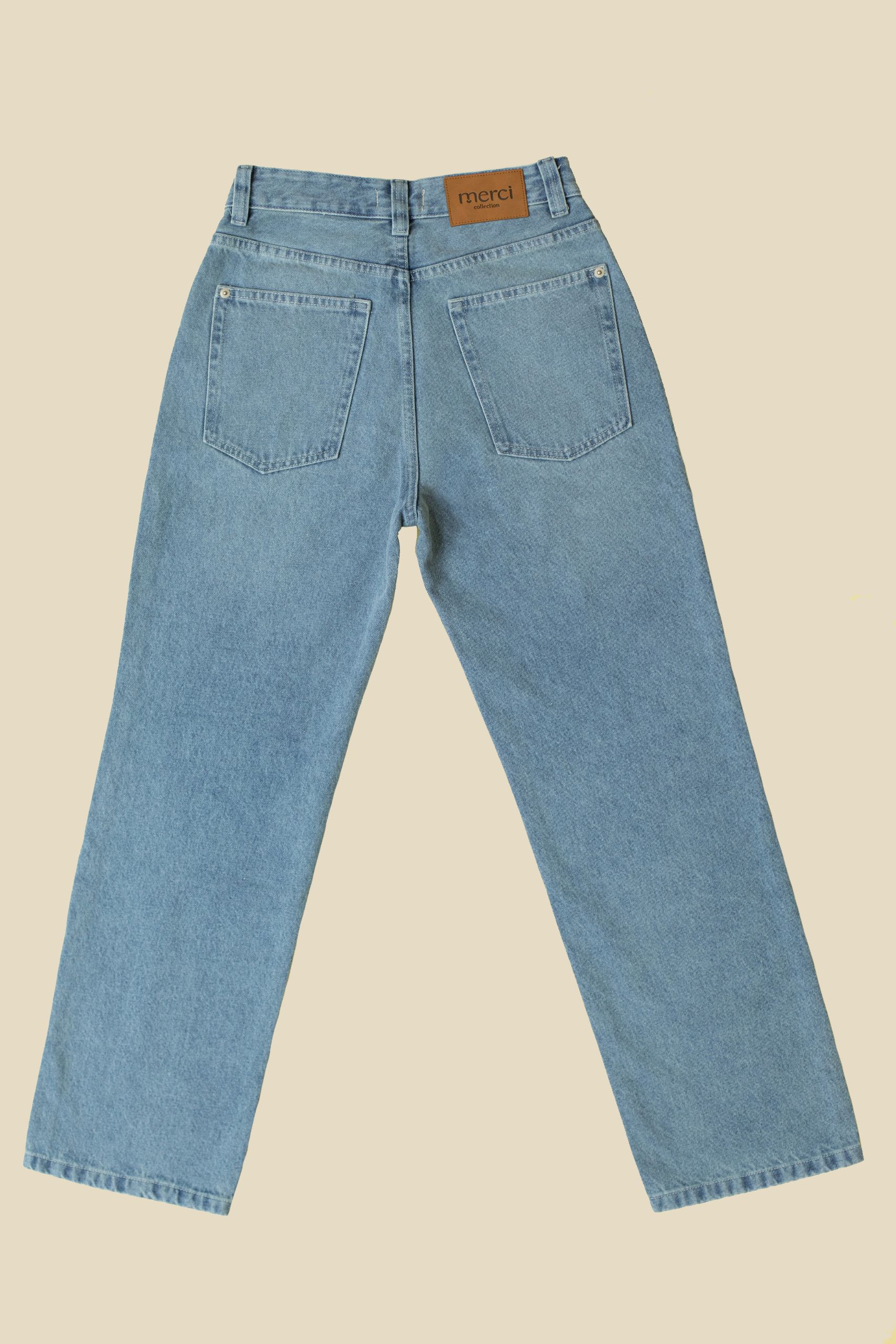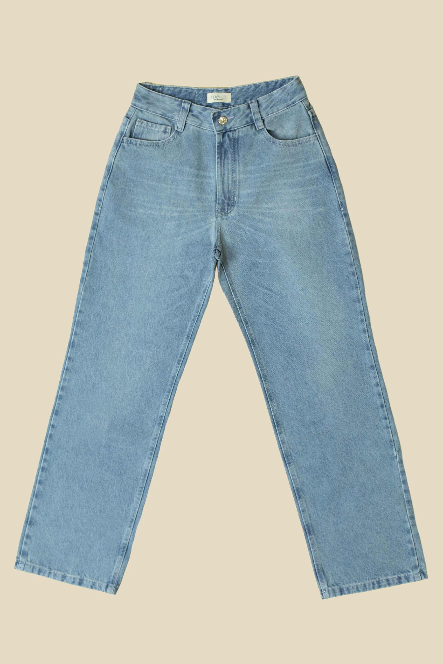 Corte recto y ancho en denim rígido. Atemporal, cómodo y con acabado limpio.