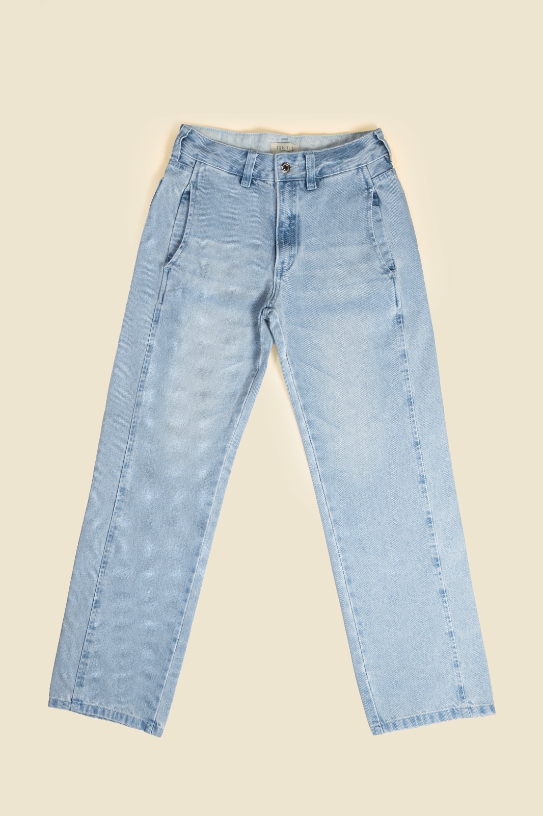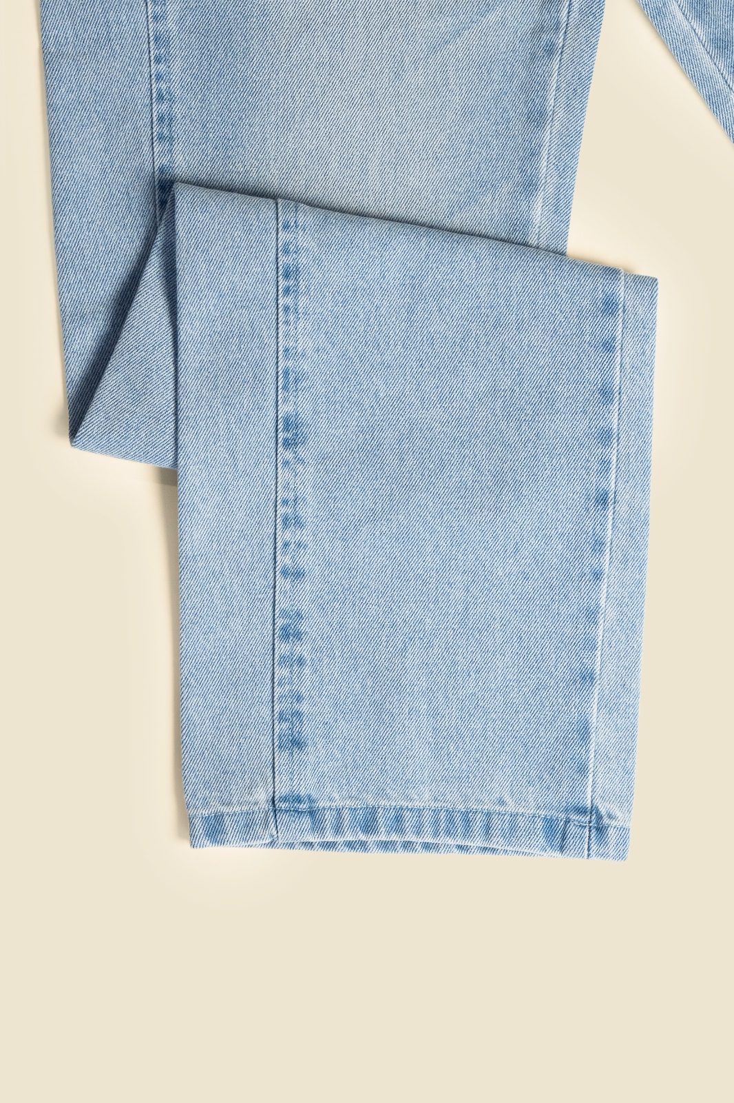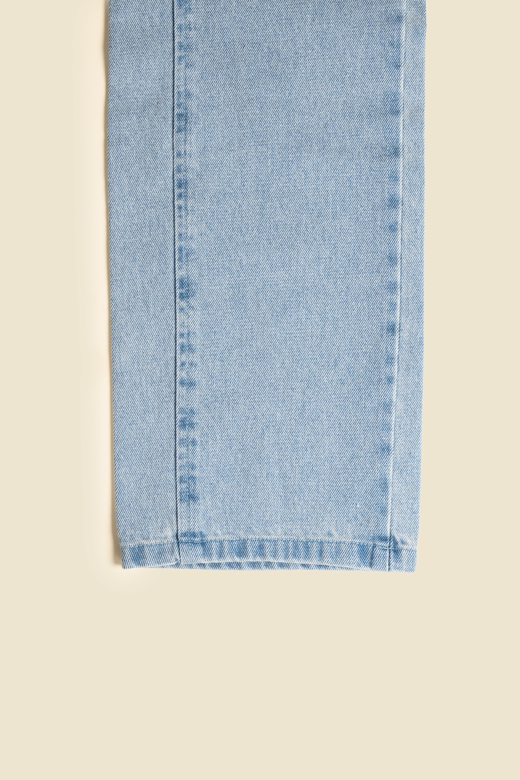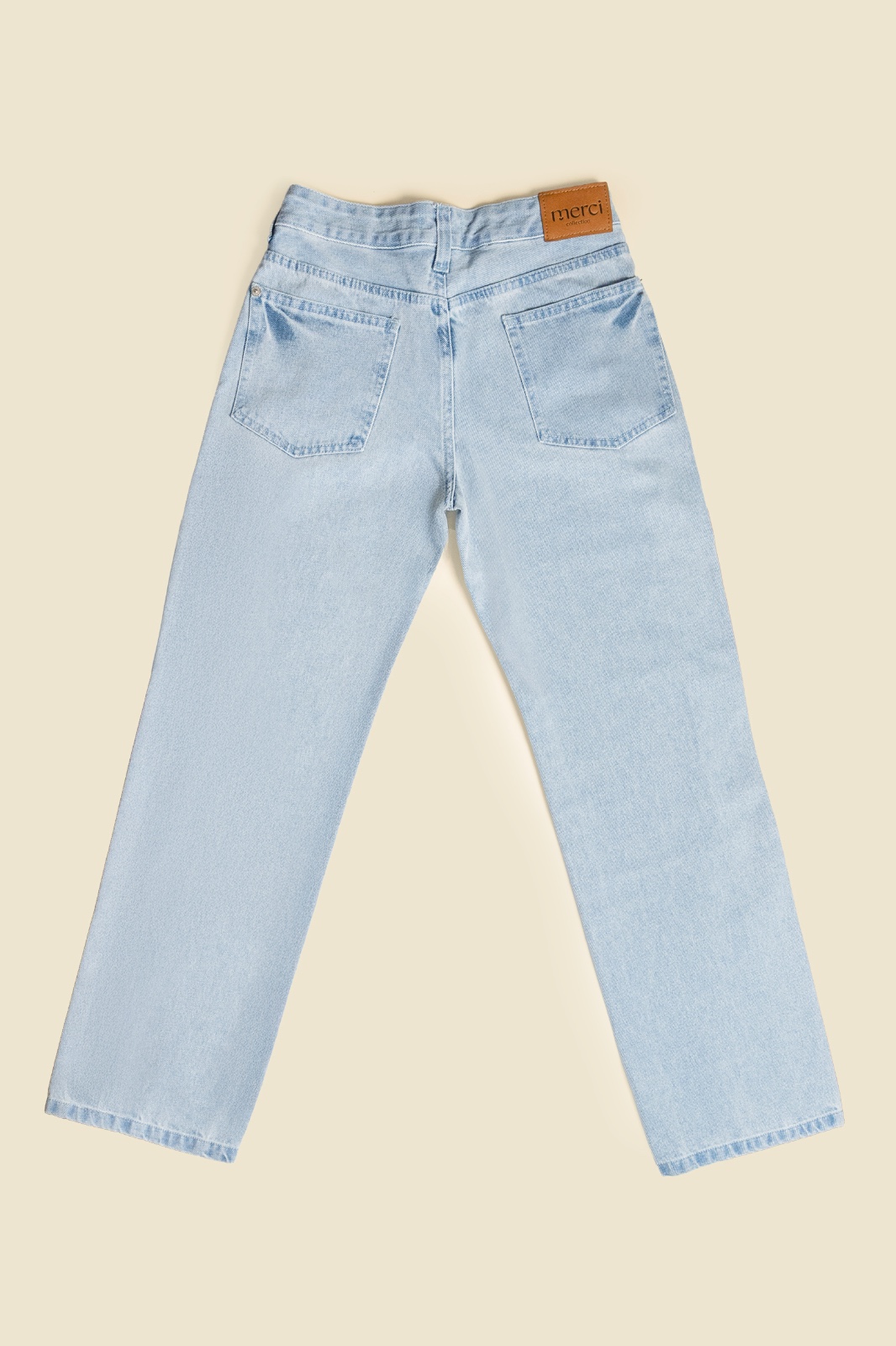 Este jean straight wide-leg de tiro medio en tono azul claro ofrece una silueta relajada y moderna. La pierna ancha, que se extiende desde la cadera hasta el tobillo, junto con la bota recta, crea un look fluido y estructurado.