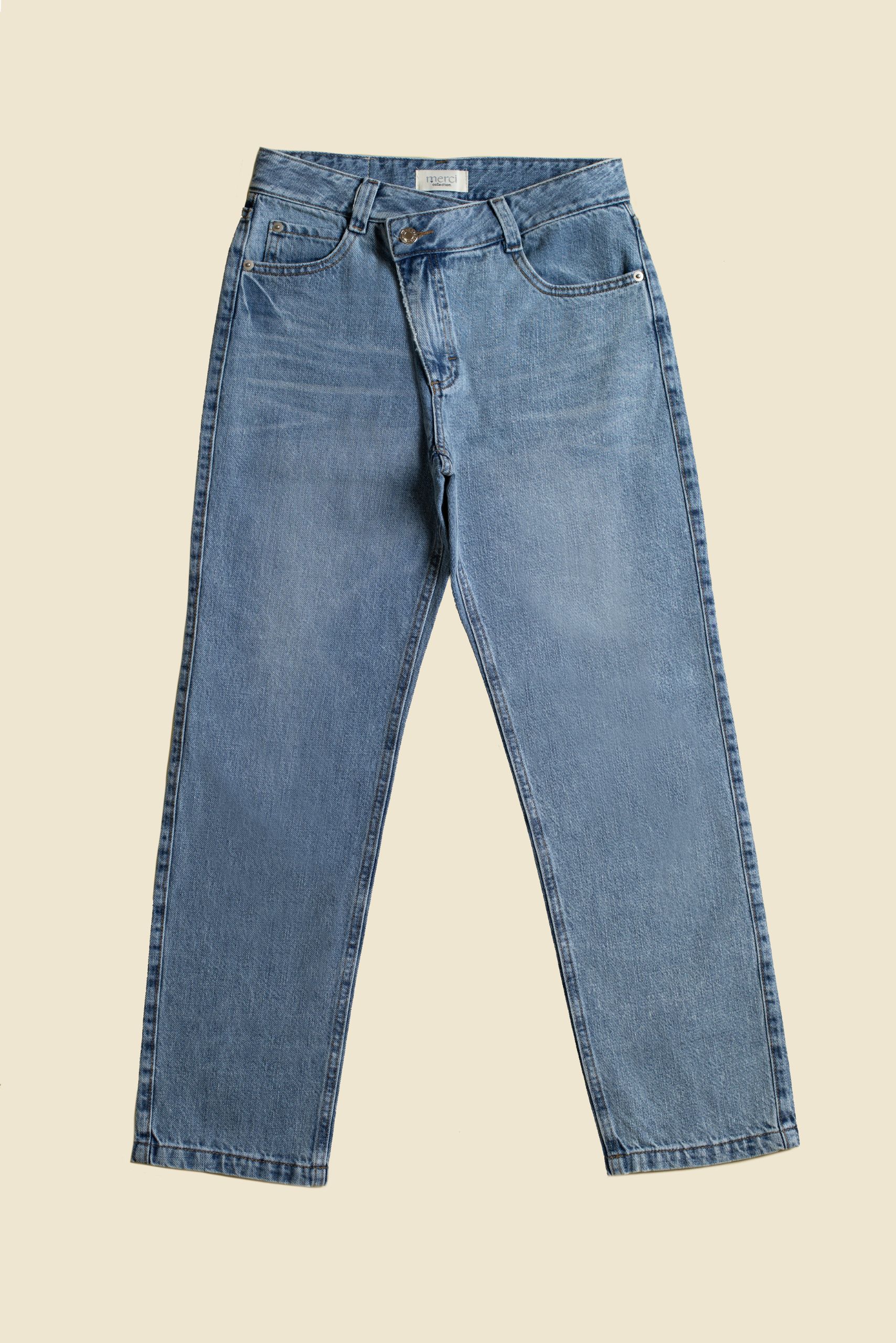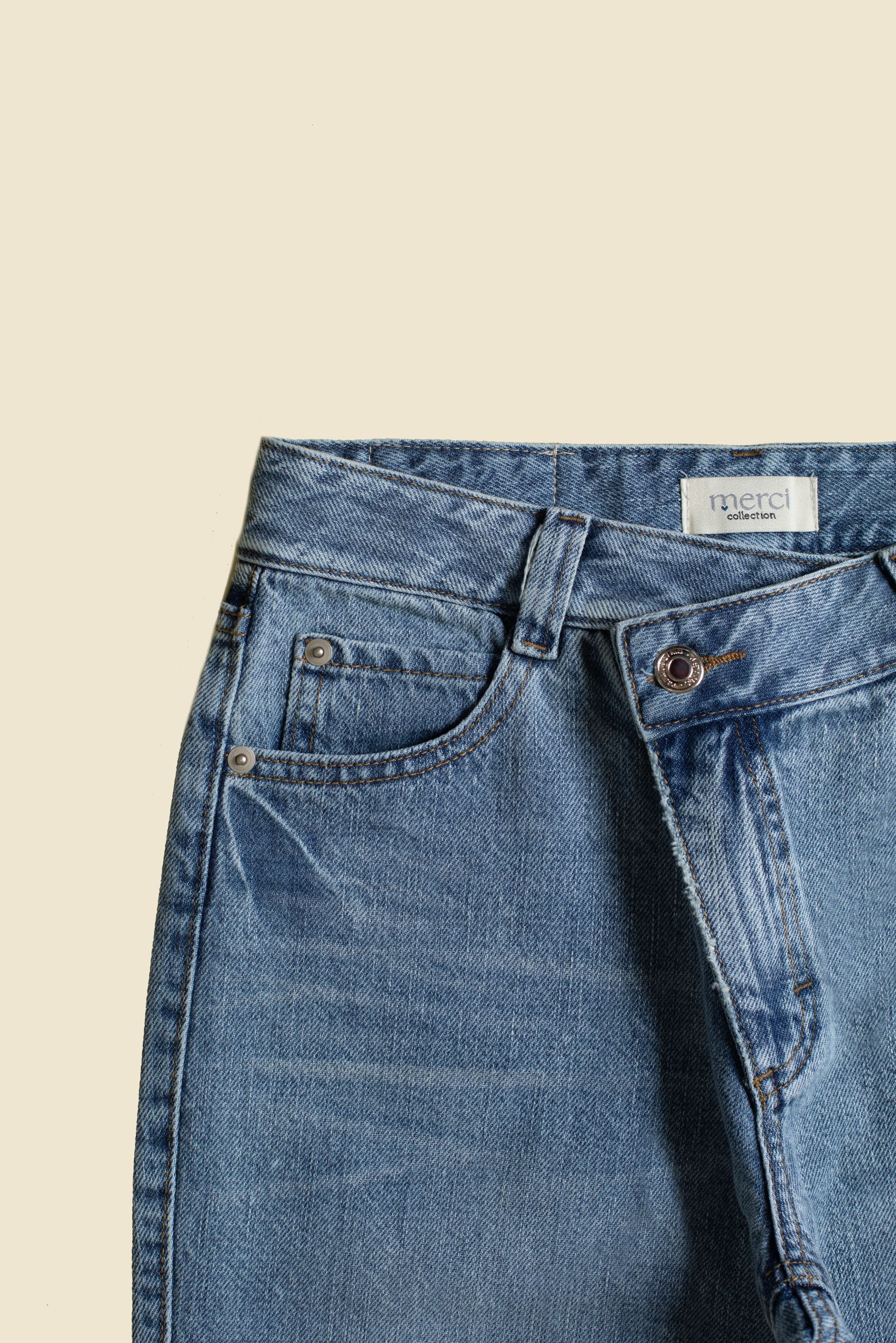 Jean tiro medio de corte recto moderno con cierre diagonal